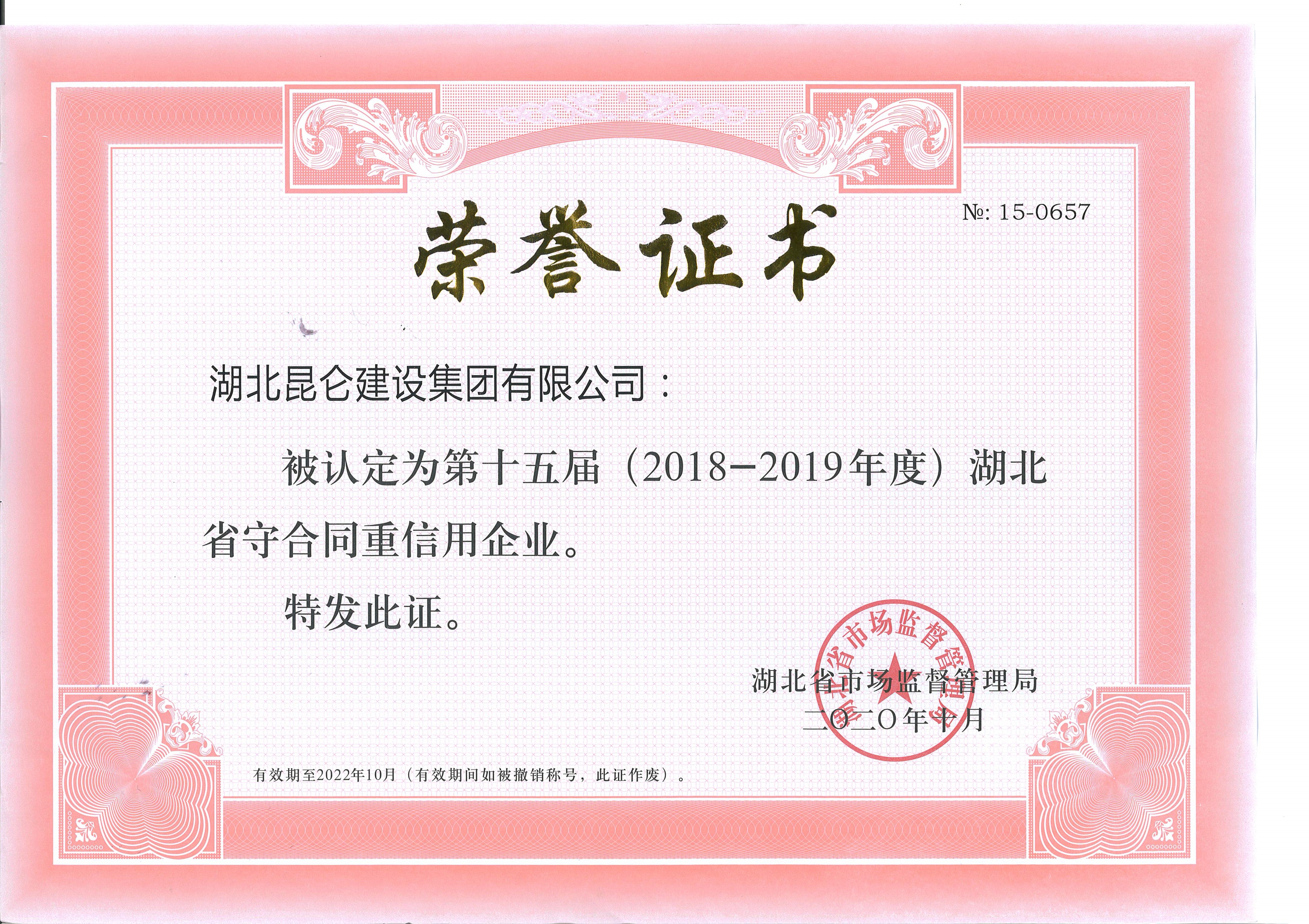 2018~2019年湖北省守合同重信用企业