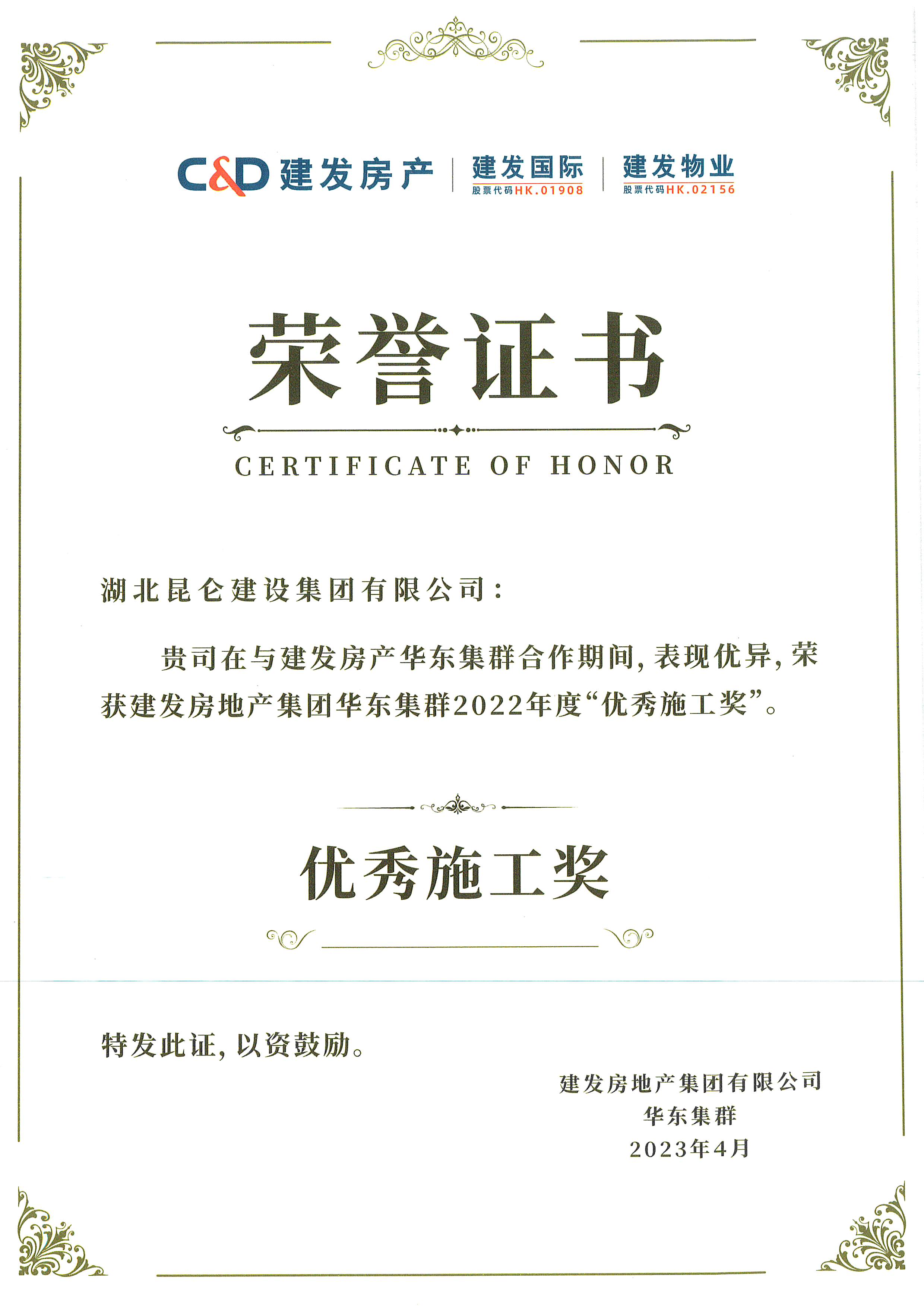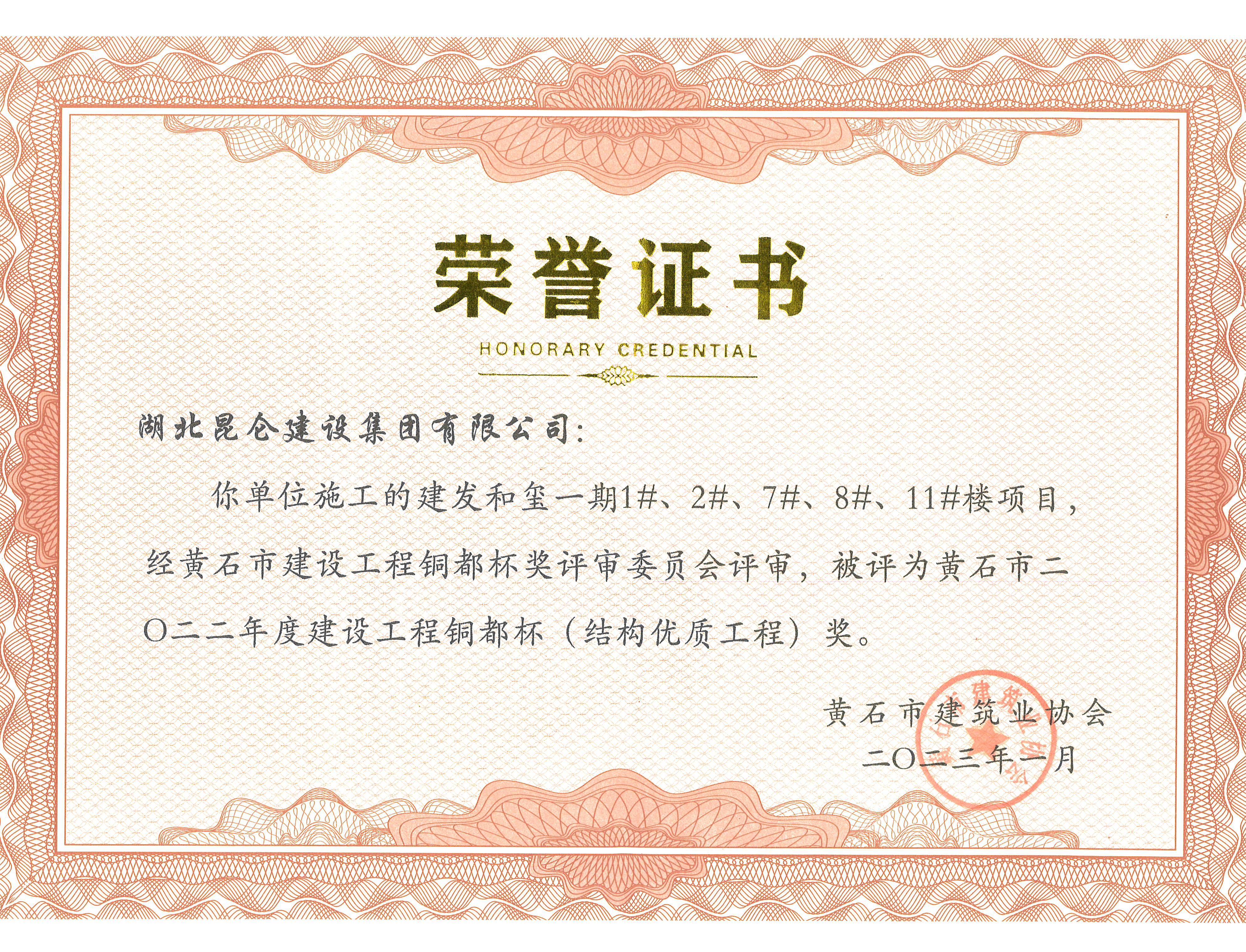 建发集团2022年度优秀施工奖