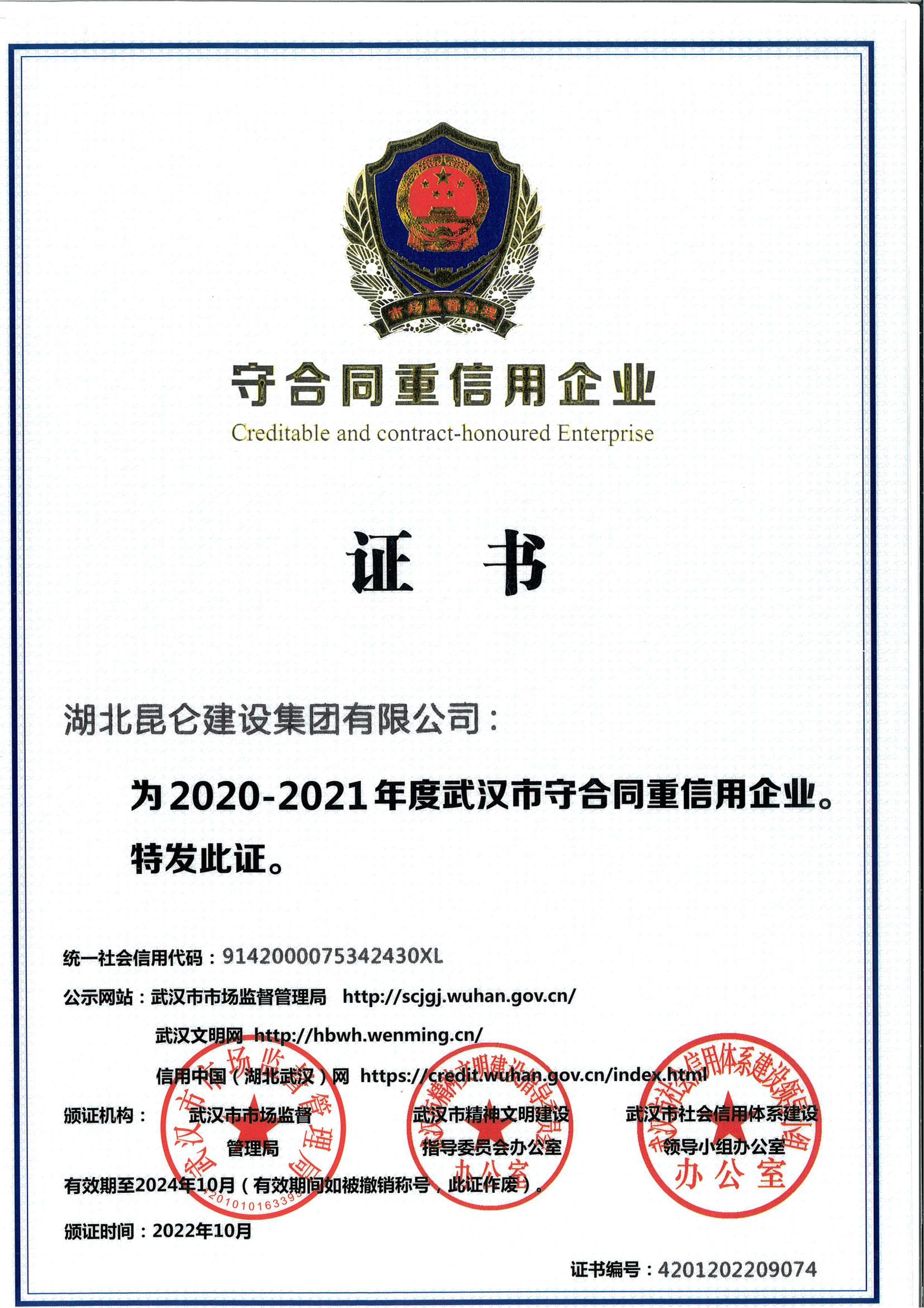 2020-2021年度武汉市守合同重信用企业