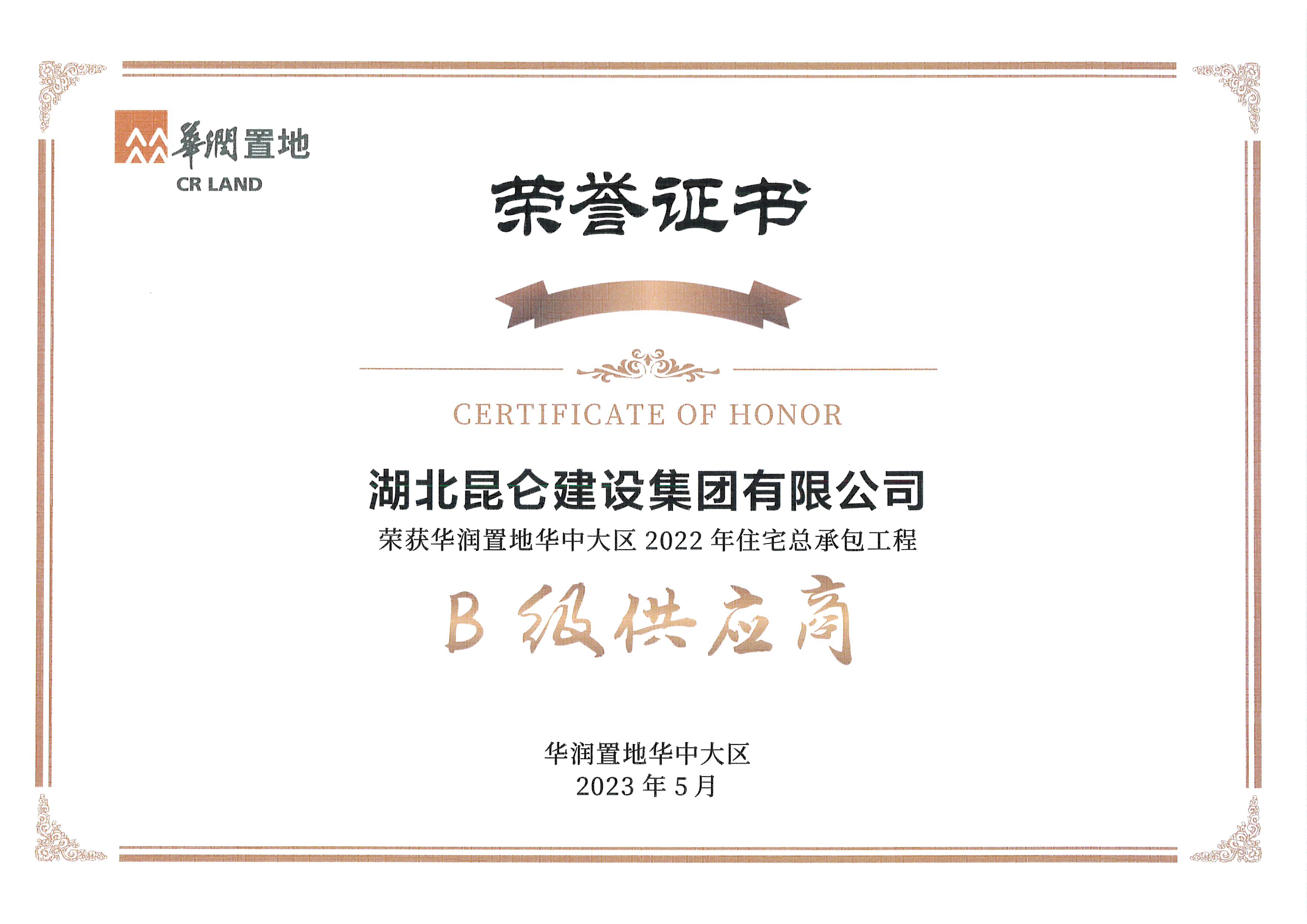2023年5月荣获华润置地供应商“攻艰克难奖”