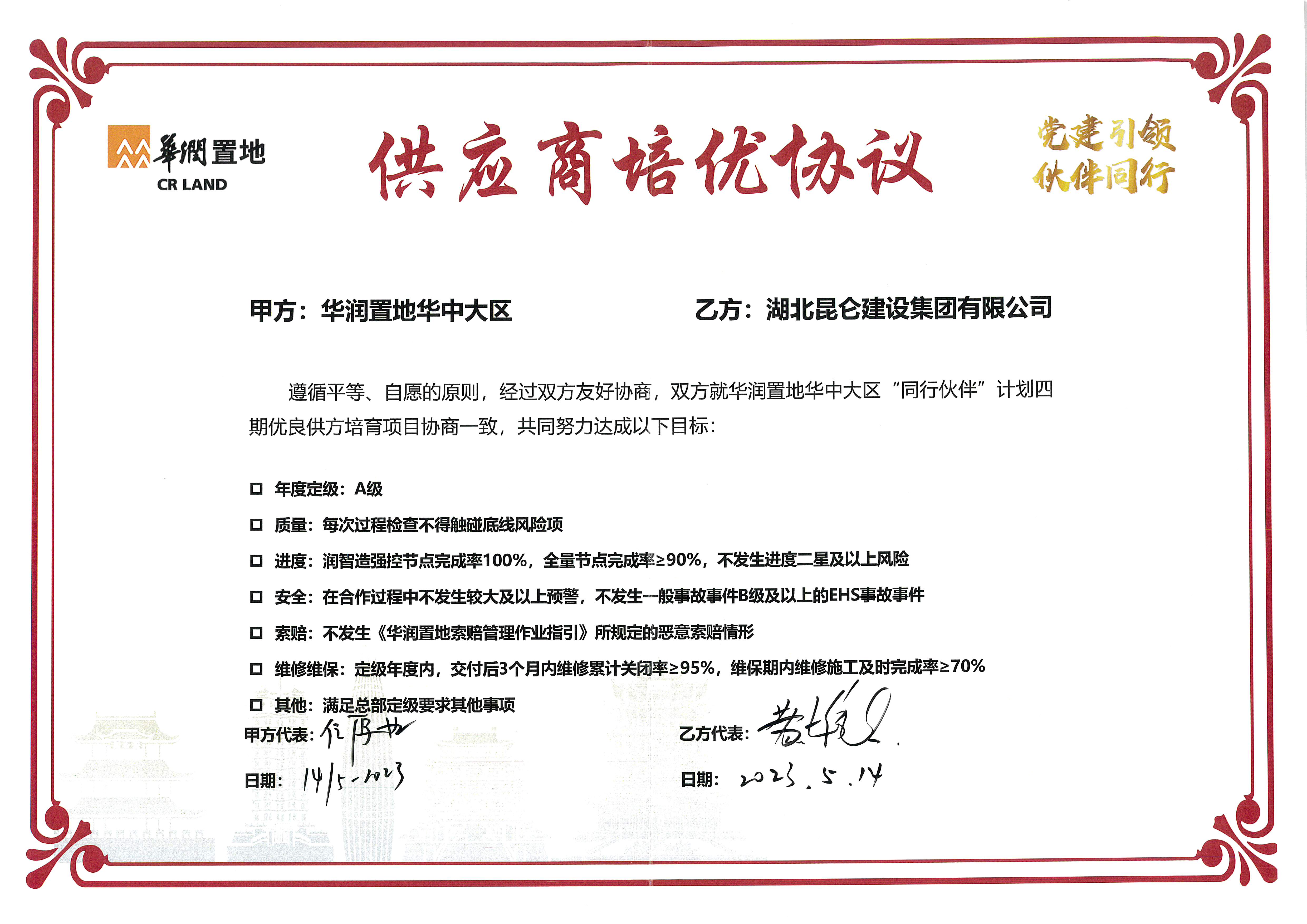 2023年5月14日签署华润置地华中大区(供应商...